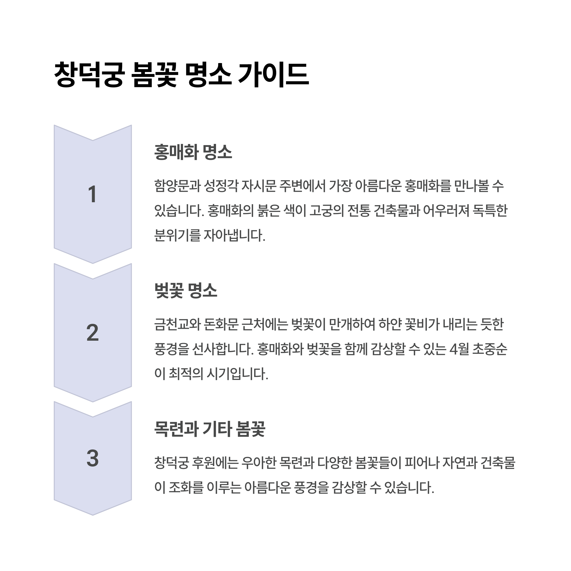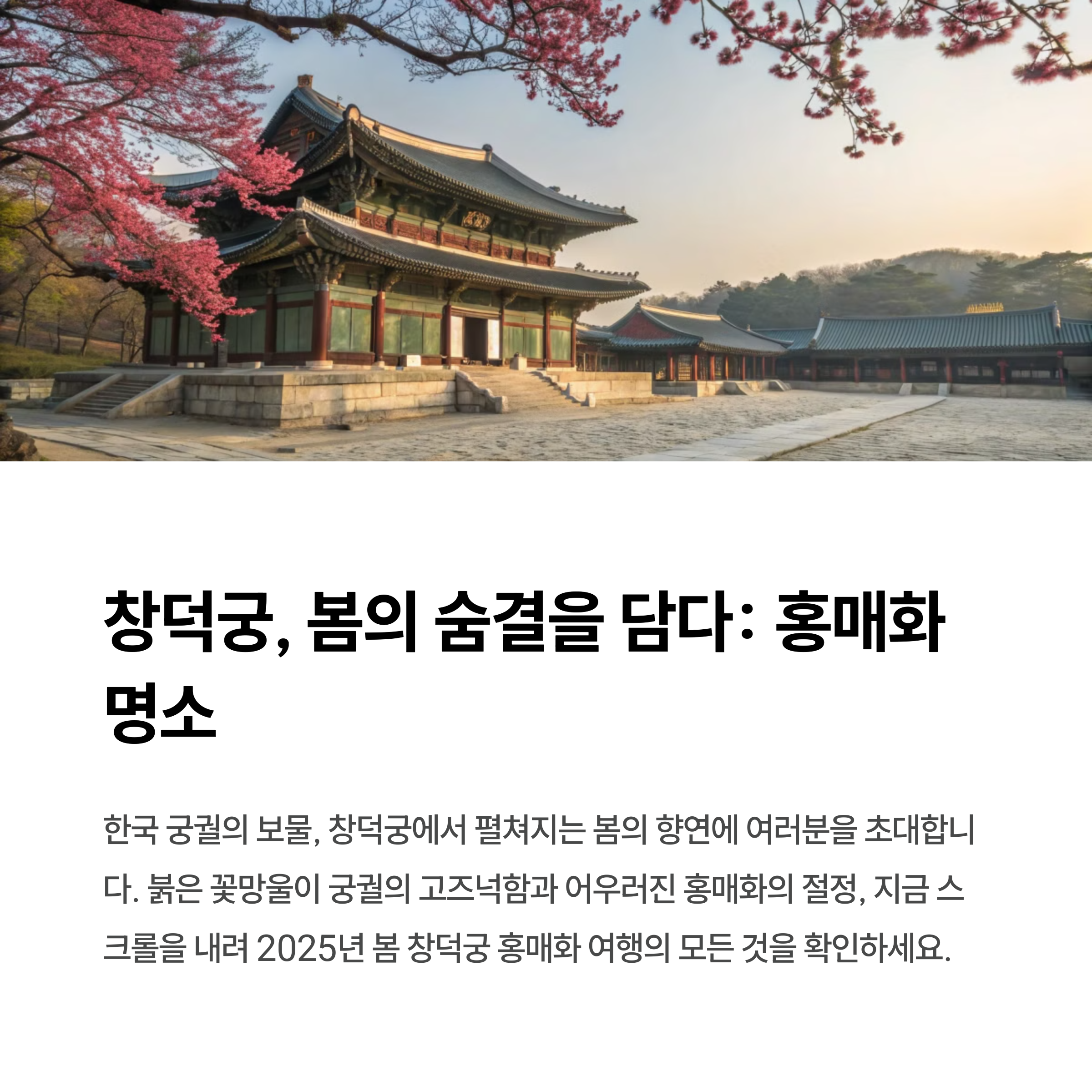 | 2025년 3월 말 개화 시작, 4월 초 만개 | 종로 창덕궁에서 즐기는 다양한 봄꽃 | 고풍스러운 풍경 속 힐링 여행지 |