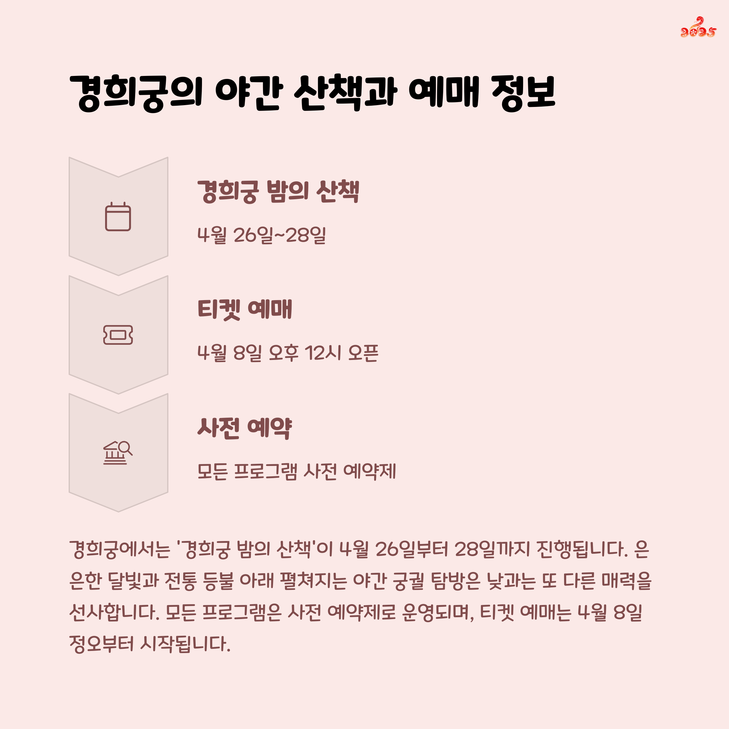 | Q. 2025 봄 궁중문화축전은 어디에서 사전 예약 가능합니까? |