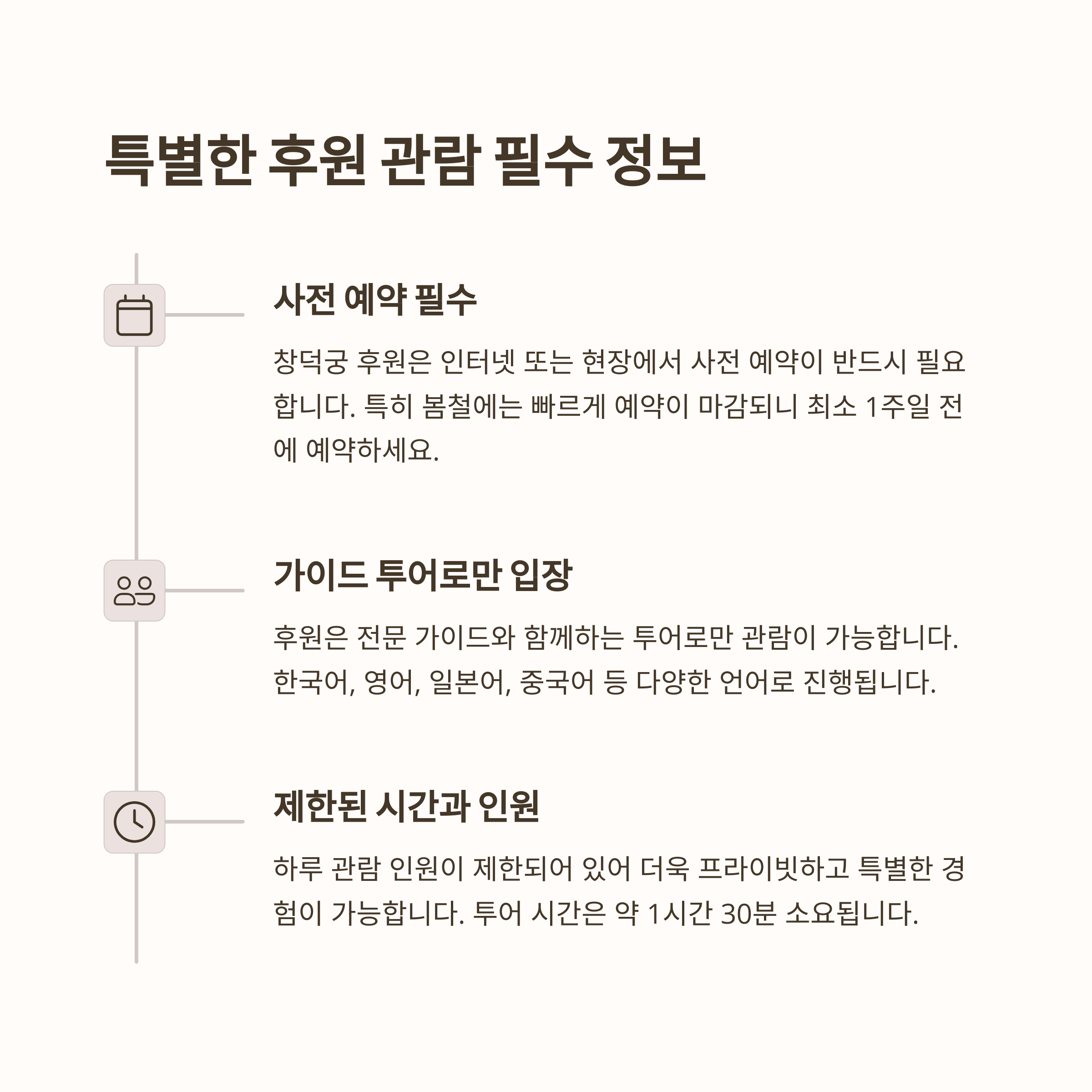 | 창덕궁 낙선재 | 봄꽃 절정 시기 | 후원 관람 팁 |