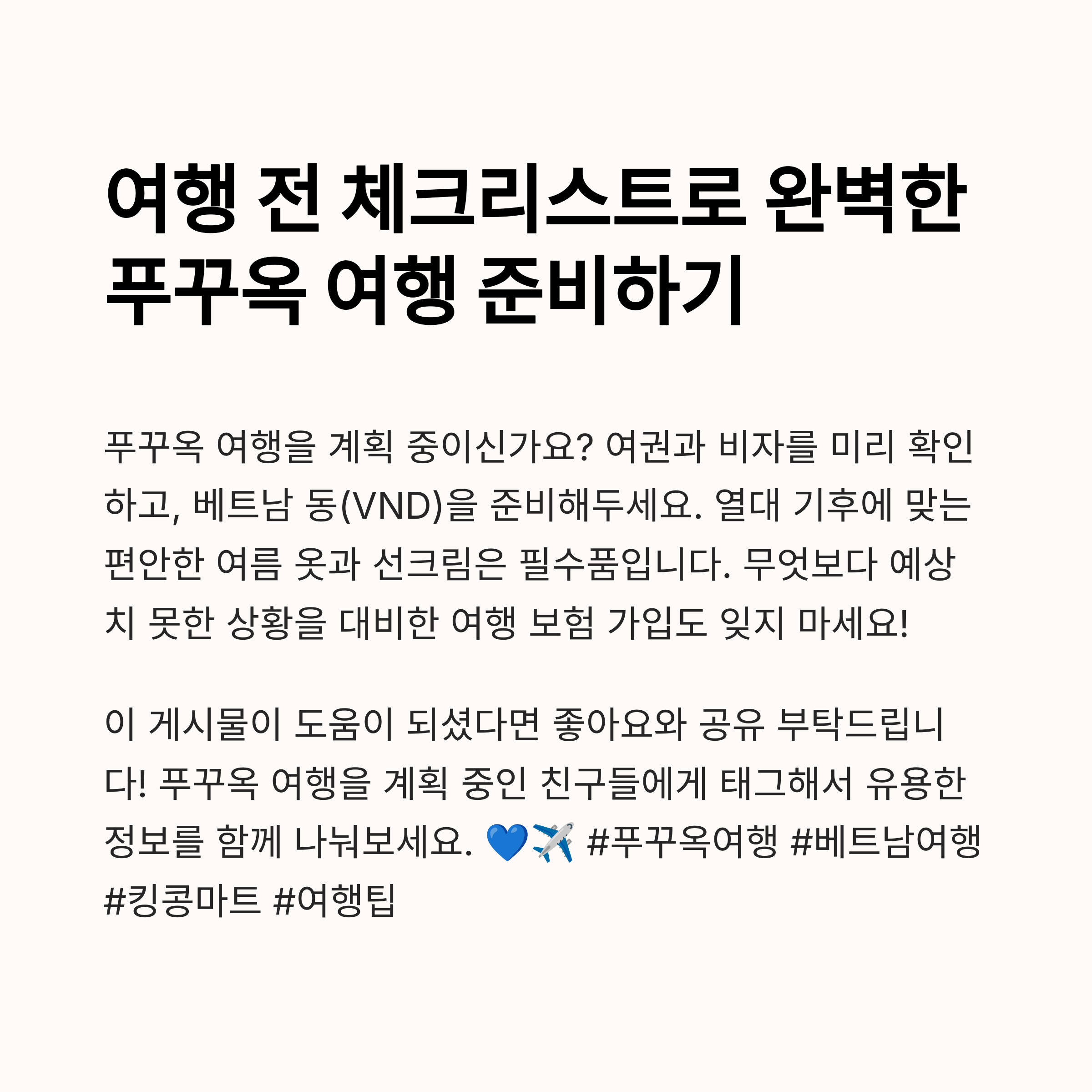 오늘은 푸꾸옥 여행을 위해 필요한 중요한 정보를 준비해 보았습니다.