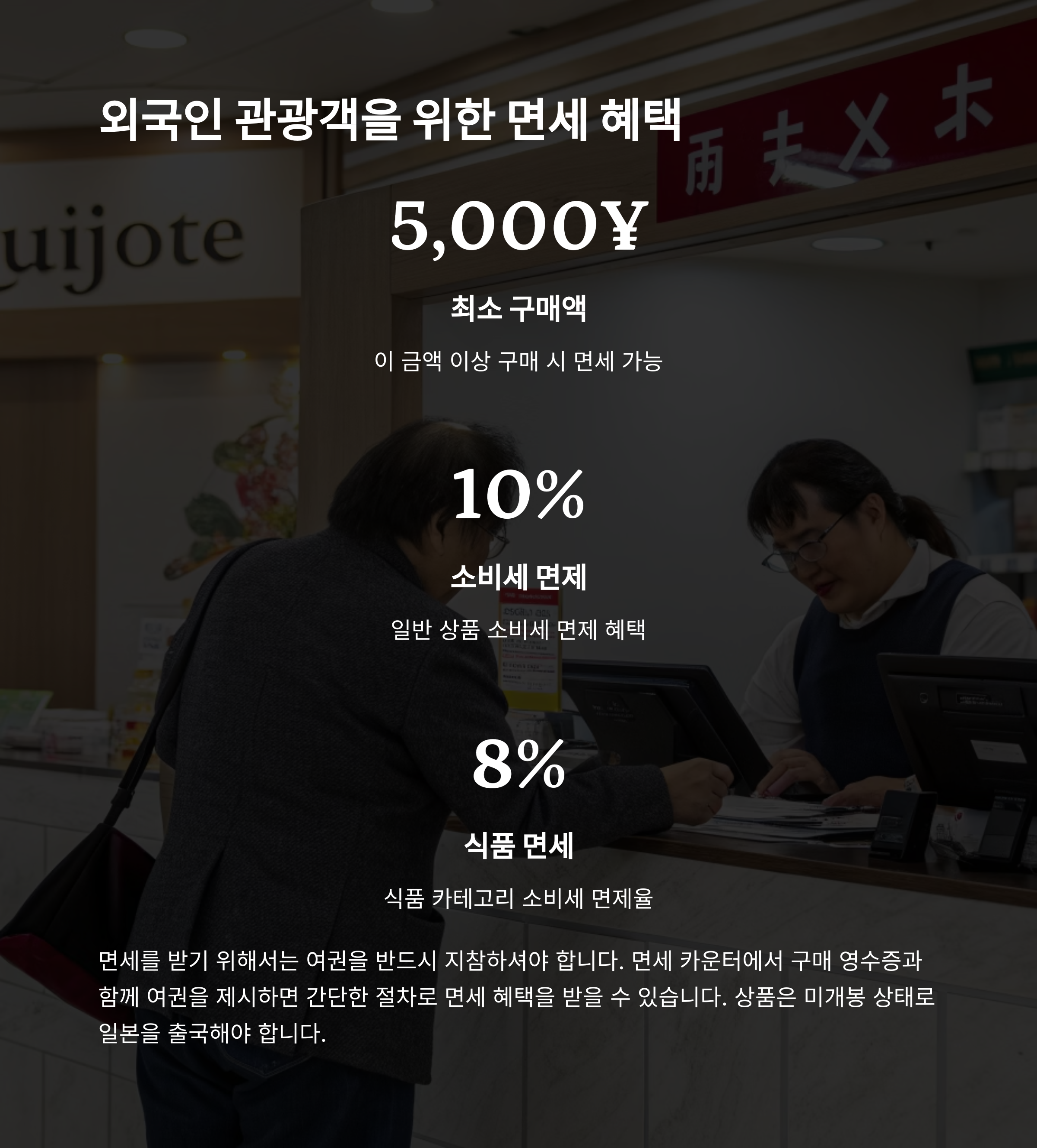 | Q. 돈키호테에서 면세 혜택을 받을 수 있는 조건은 무엇인가요? |