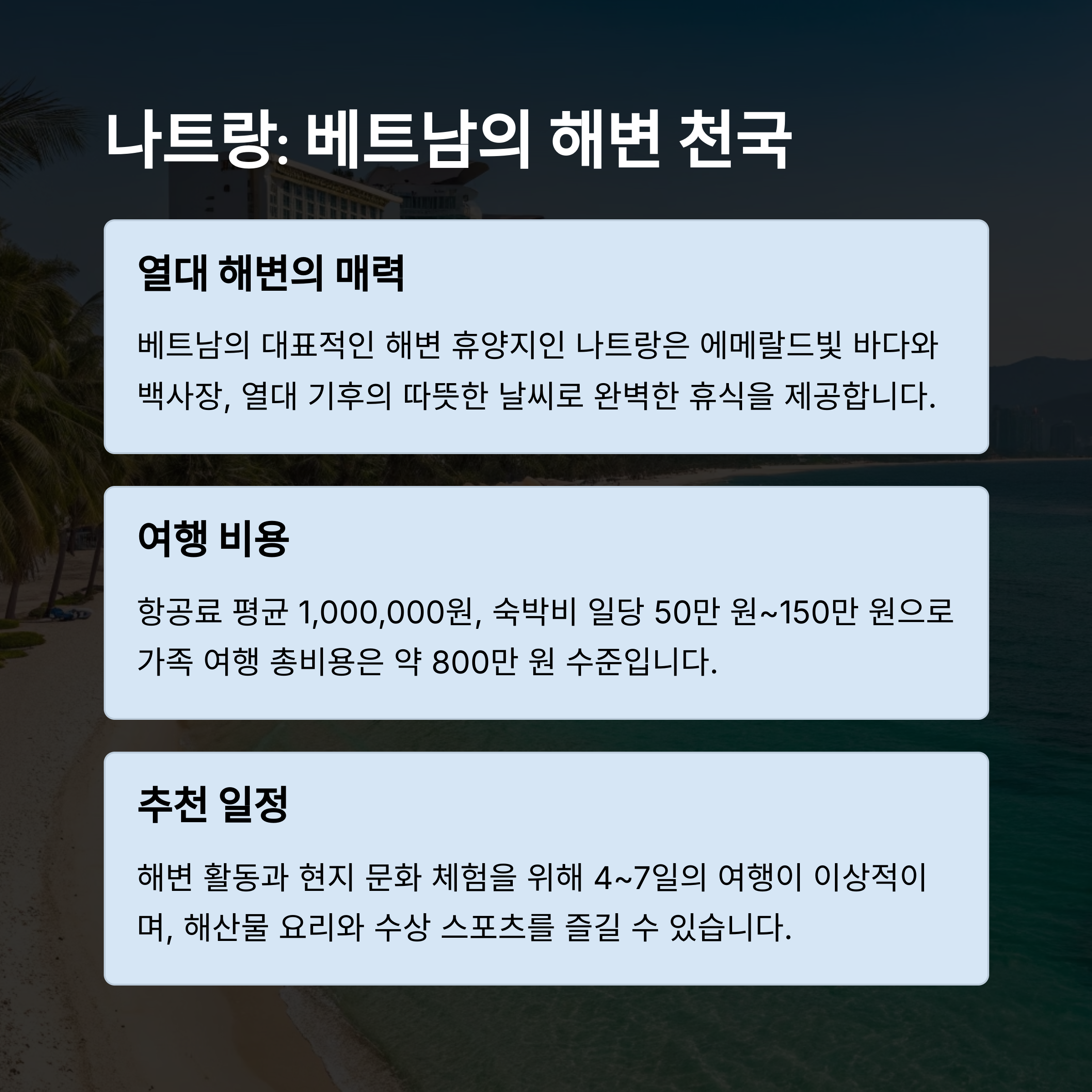 나트랑: 해외 럭셔리 휴양지로 가족 휴식 및 즐길 거리가 풍부합니다.