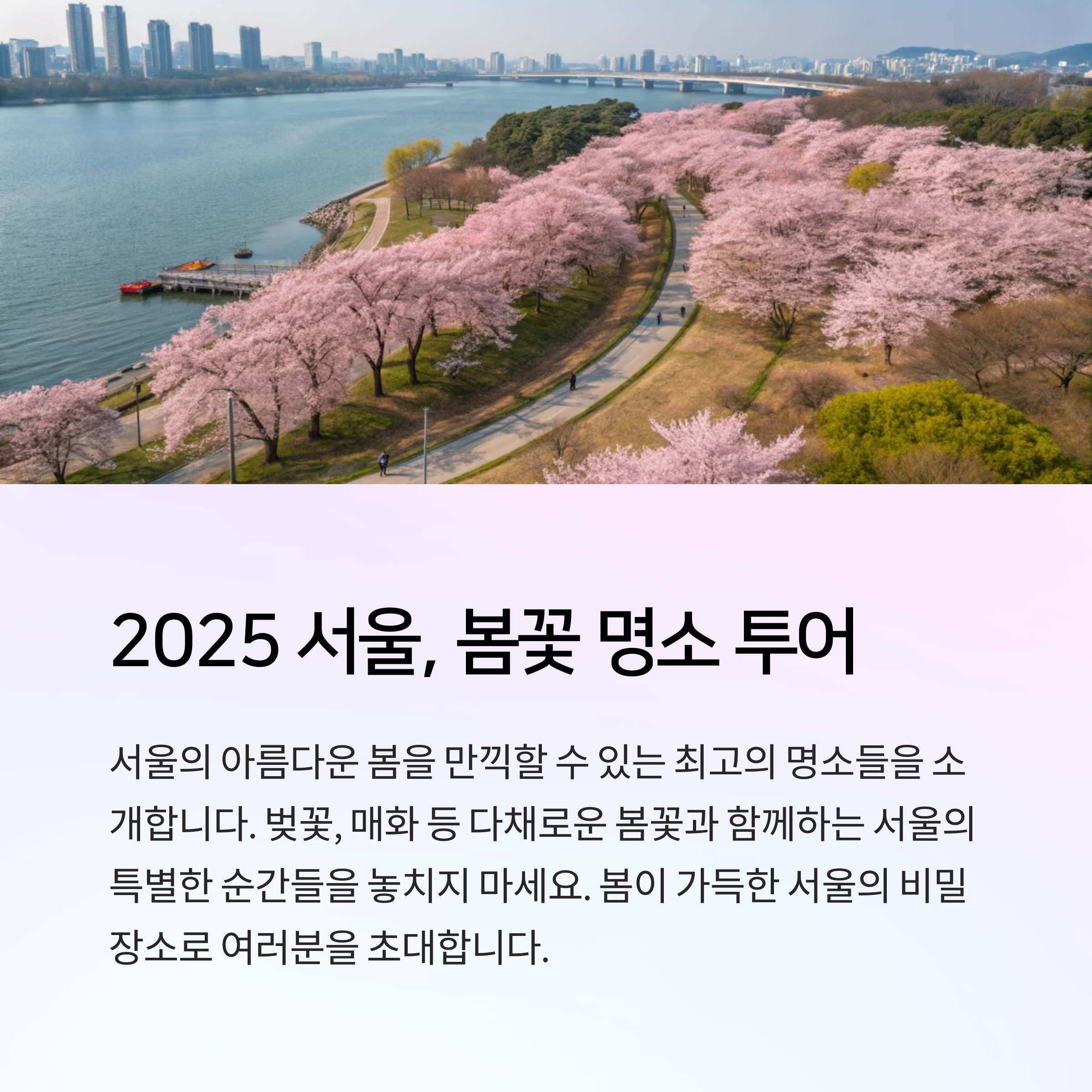 봄이 오면 가장 먼저 생각나는 것은 바로 만개한 벚꽃과 봄꽃 풍경입니다. 특히 서울의 봄은 도시와 자연이 조화를 이루며 많은 사람들의 사랑을 받고 있습니다. 올해도 어김없이 여의도 윤중로, 석촌호수, 서울숲, 남산공원은 화려한 봄꽃으로 많은 시민들과 관광객들의 발걸음을 사로잡고 있습니다. 따뜻한 봄 햇살 아래에서 벚꽃을 즐기며 산책을 하거나 사진을 찍는 이들의 모습은 서울의 봄을 대표하는 풍경이기도 합니다. 이 글에서는 2025년 서울의 대표적인 봄꽃 명소와 함께 특히 고궁에서 만나는 특별한 풍경인 창덕궁 낙선재의 홍매화 개화 시기에 대해서도 자세히 안내해드립니다. 벚꽃이 만개하는 4월 초순의 서울, 어디로 가야 가장 아름다운 봄 풍경을 만날 수 있는지 고민이라면 이번 포스팅을 통해 함께 확인해보세요.