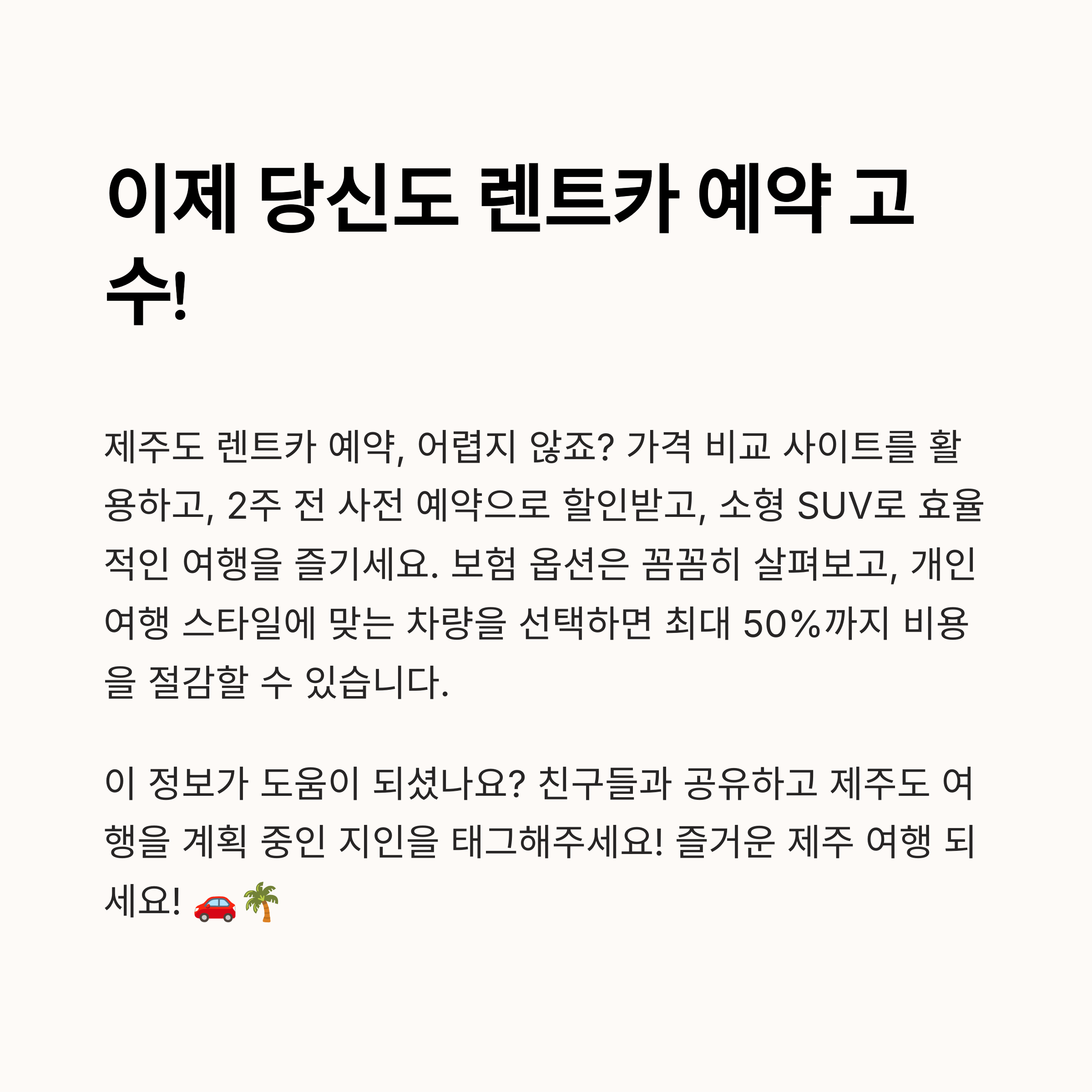 제주도 여행을 계획하시는 분들을 위해 경제적인 렌트카 예약 팁을 정리했습니다.