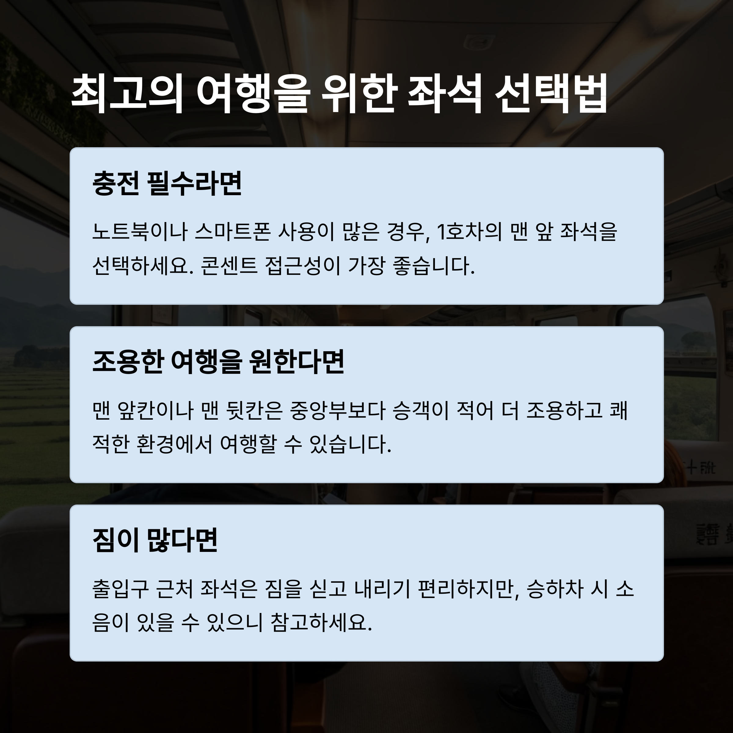 무궁화호 좌석 선택은 단순히 좌석 번호를 골라내는 작업이 아닙니다.