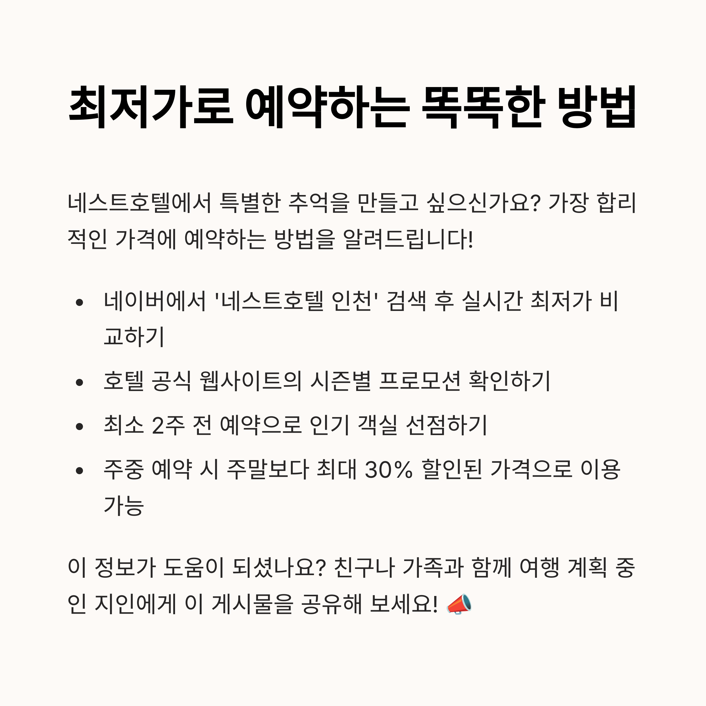 네스트호텔 선택의 이유
