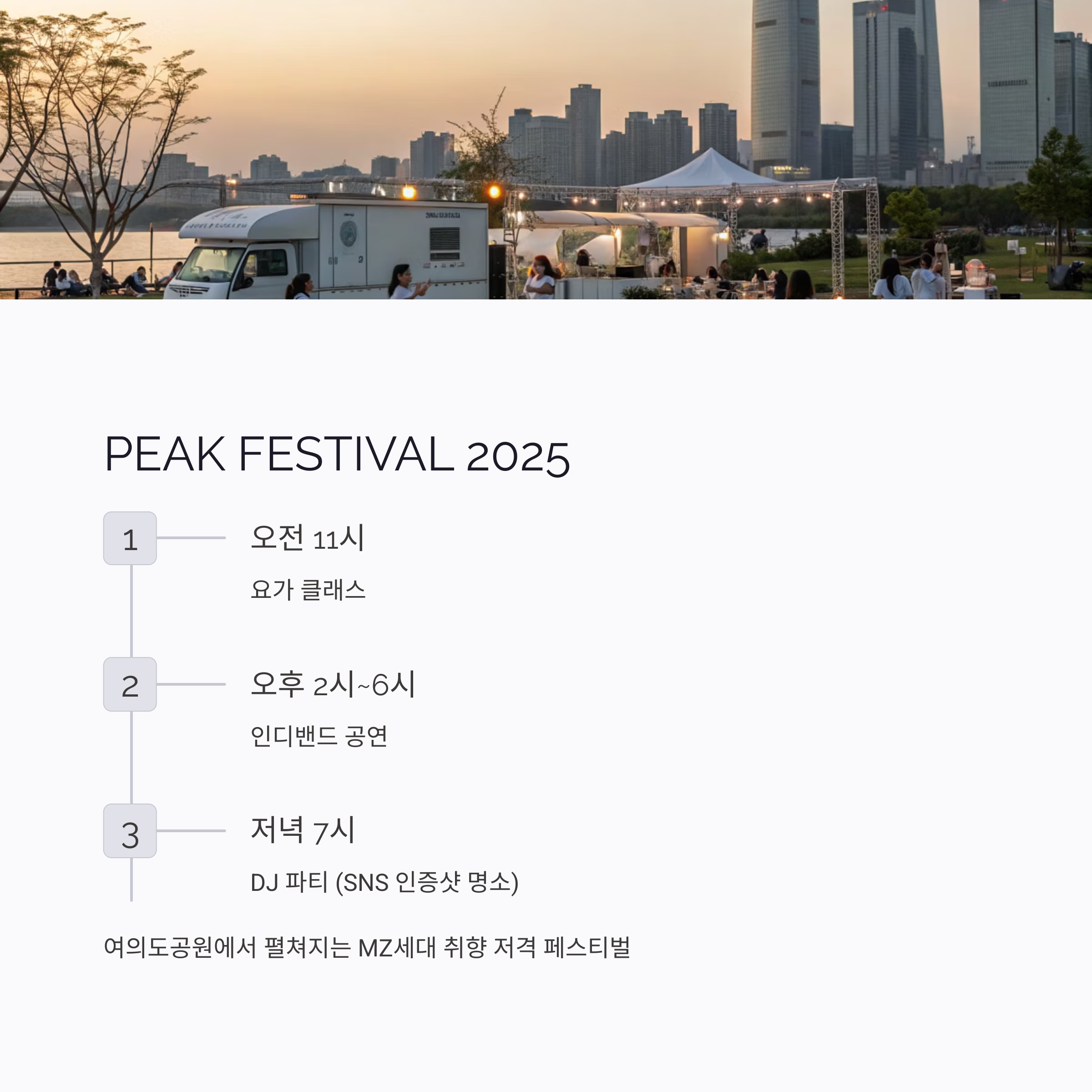 🎵 음악 페스티벌 + 🧘‍♀️요가 클래스 + 🥙푸드트럭 마켓