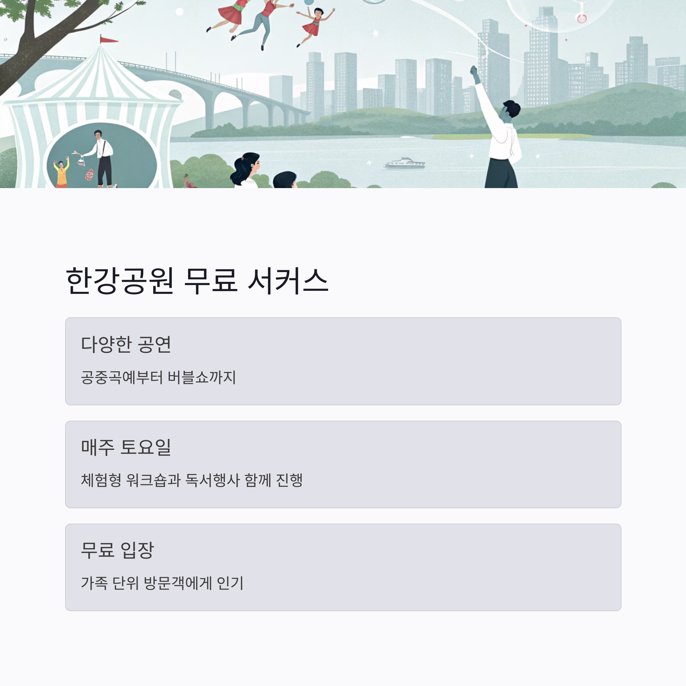 한강공원에서 매주 만나는 무료 서커스! 가족 나들이 강력 추천