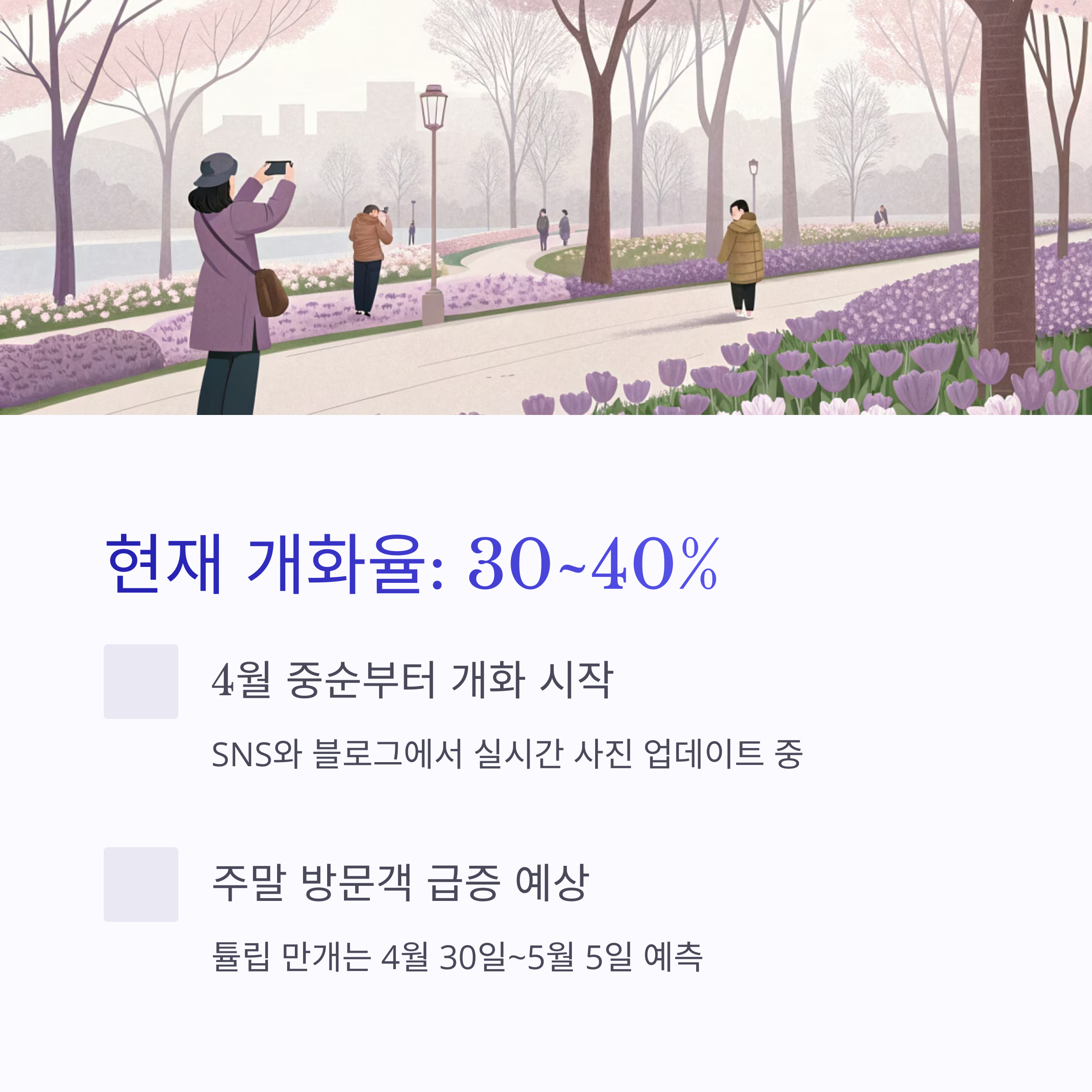 1. 실시간 개화율 요약: 30~40%, 이번 주말이 핵심!