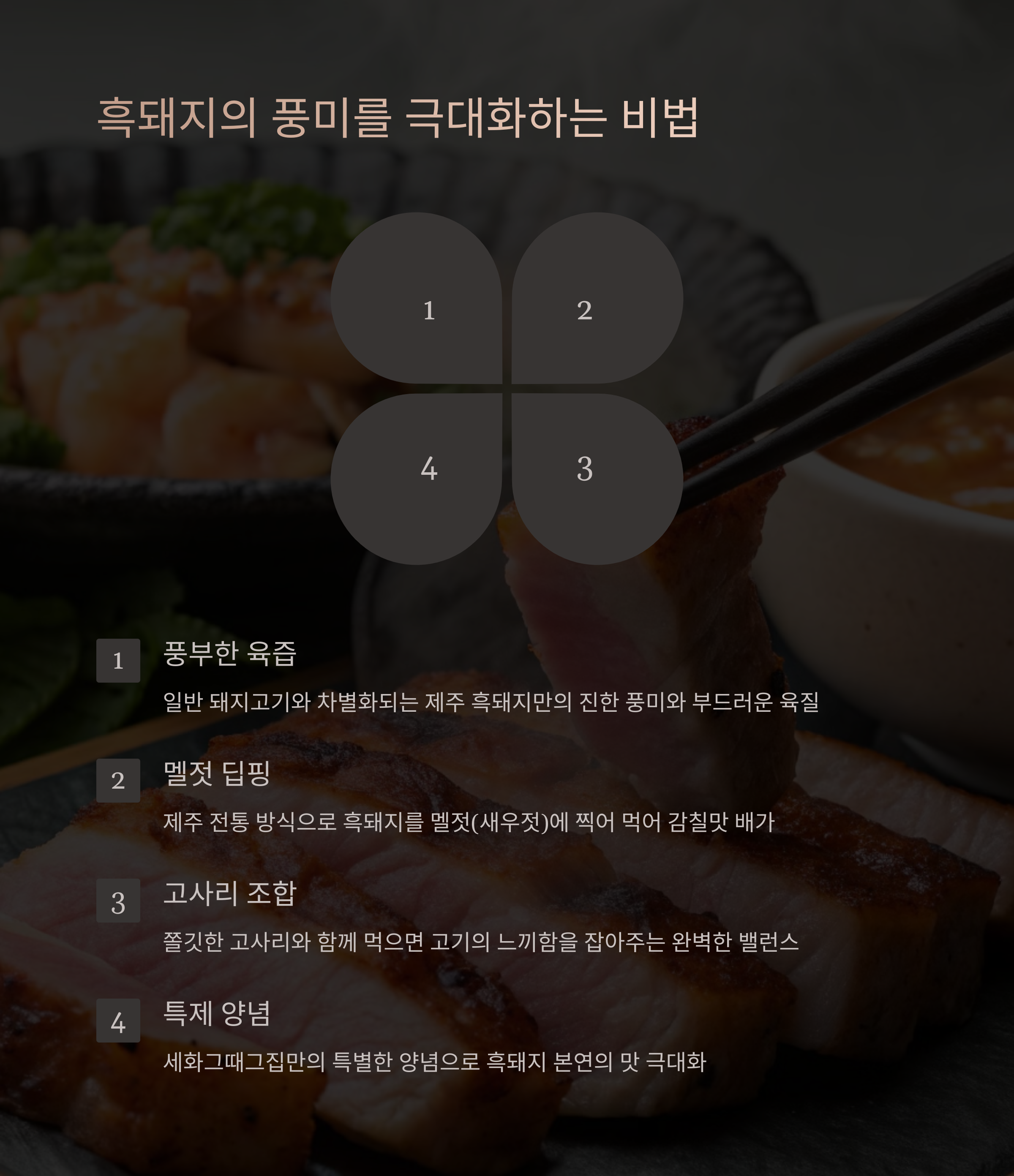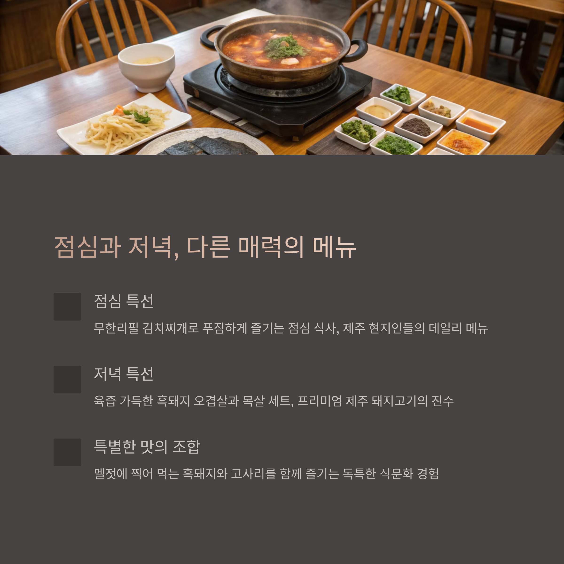 | 제주에서만 맛볼 수 있는 진한 풍미의 흑돼지 | 전통 제주식 흑돼지 먹는 방법의 핵심 조합 | 현지인이 즐겨 찾는 숨은 진짜 맛집 |